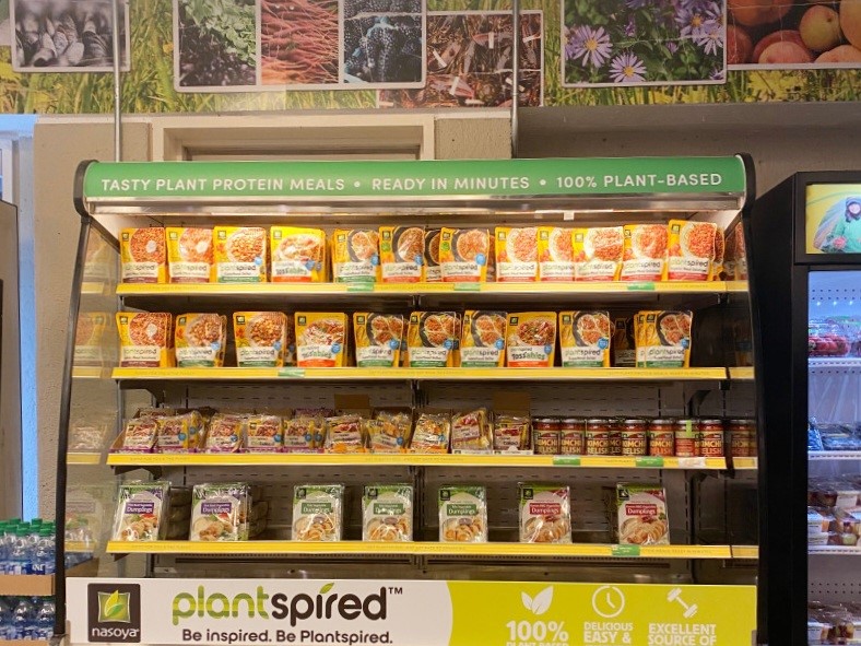▲ Products of Pulmuone USA's plant-based food brand "Plantspired" are displayed at the Amherst Campus of Massachusetts University in the northeast of the United States.